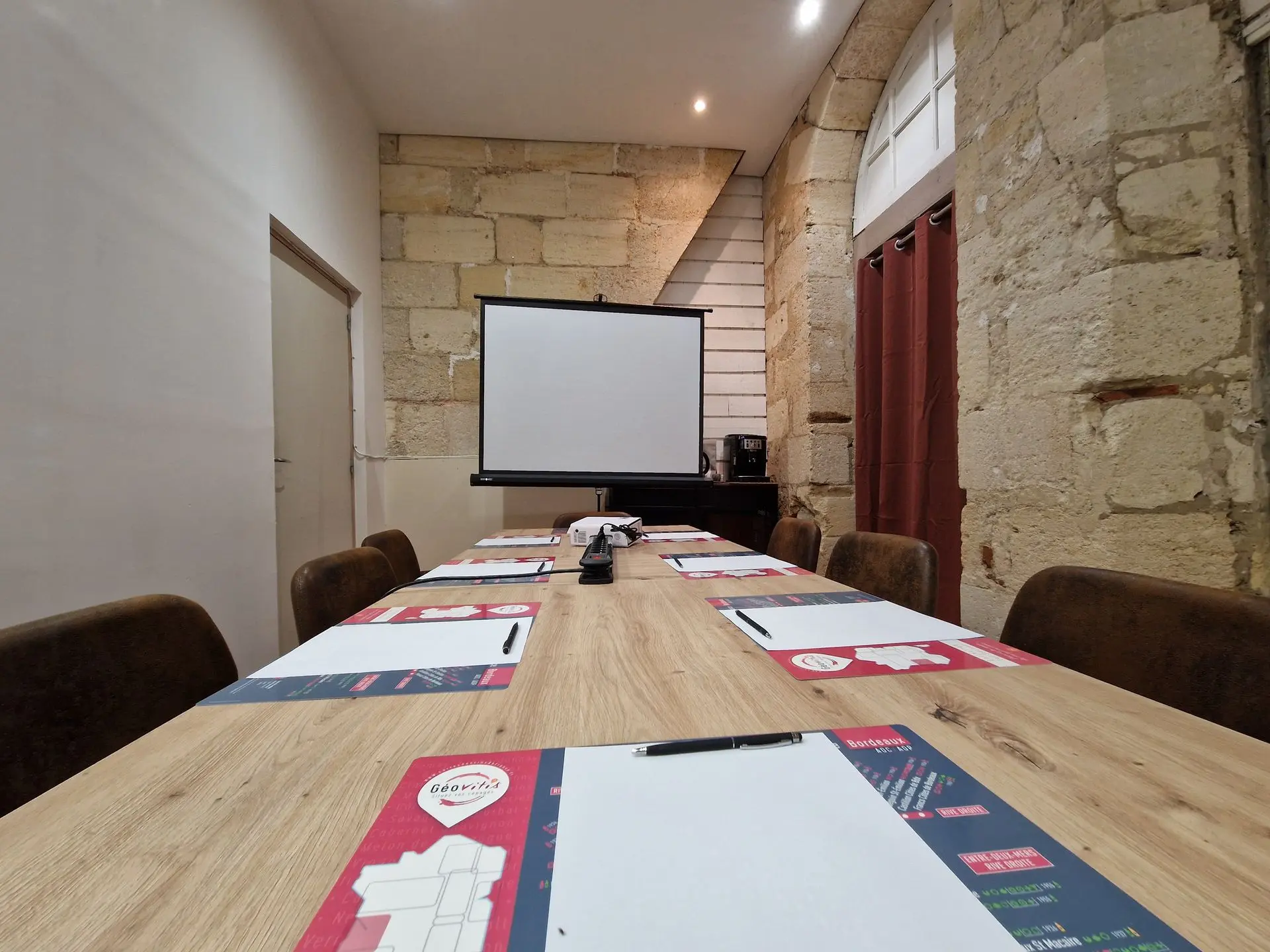 Notre salle de dégustation de 12m² toute équipée vous accueille pour 1h, 4h, ou toute une journée (ou plus !). Huit places confortables, un vidéoprojecteur, le Wifi, le tout à 70 mètres de l'arrêt de Tramway Fondaudège !